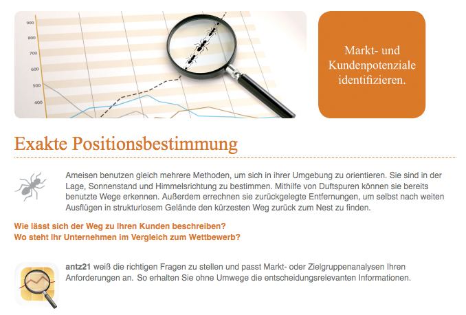 antz21 GmbH Markenentwicklung Textkonzeption für Internetauftritt und Imagemappe |