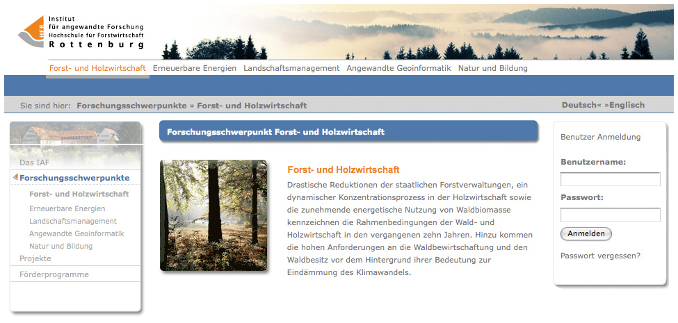 IAF der Hochschule für Forstwirtschaft Rottenburg (HFR) Webauftritt |